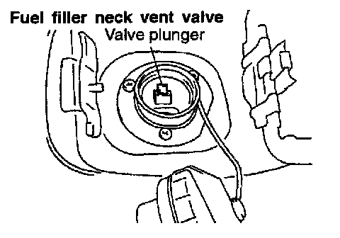NOTE When a fuel nozzle is inserted to the filler neck and the flapper door is opened, the fuel vent valve is closed (plunger moves towards the top of the neck). When the fuel cap is closed, the fuel cap pushes the plunger back in, which then opens the vent valve. If the flapper door or plunger does not operate properly, the vent valve stays closed even after the fuel cap is closed. This may block the vapor passage. A defective vent valve plunger may also cause the fuel cap not to seat properly. Either of these conditions can set the DTC P0442.