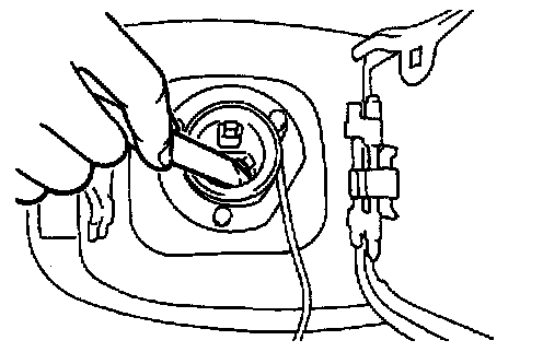 a. Remove the fuel cap and install the filler neck adapter in the emission system tester kit in place of the fuel cap.
