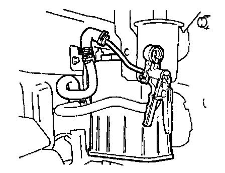 7. Using a locking plier, pinch the hose between the purge solenoid and the intake plenum to close the purge flow, as a preparation of the performance test.