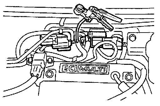 1. Plug the purge solenoid-to-air intake plenum hose at the purge solenoid side.