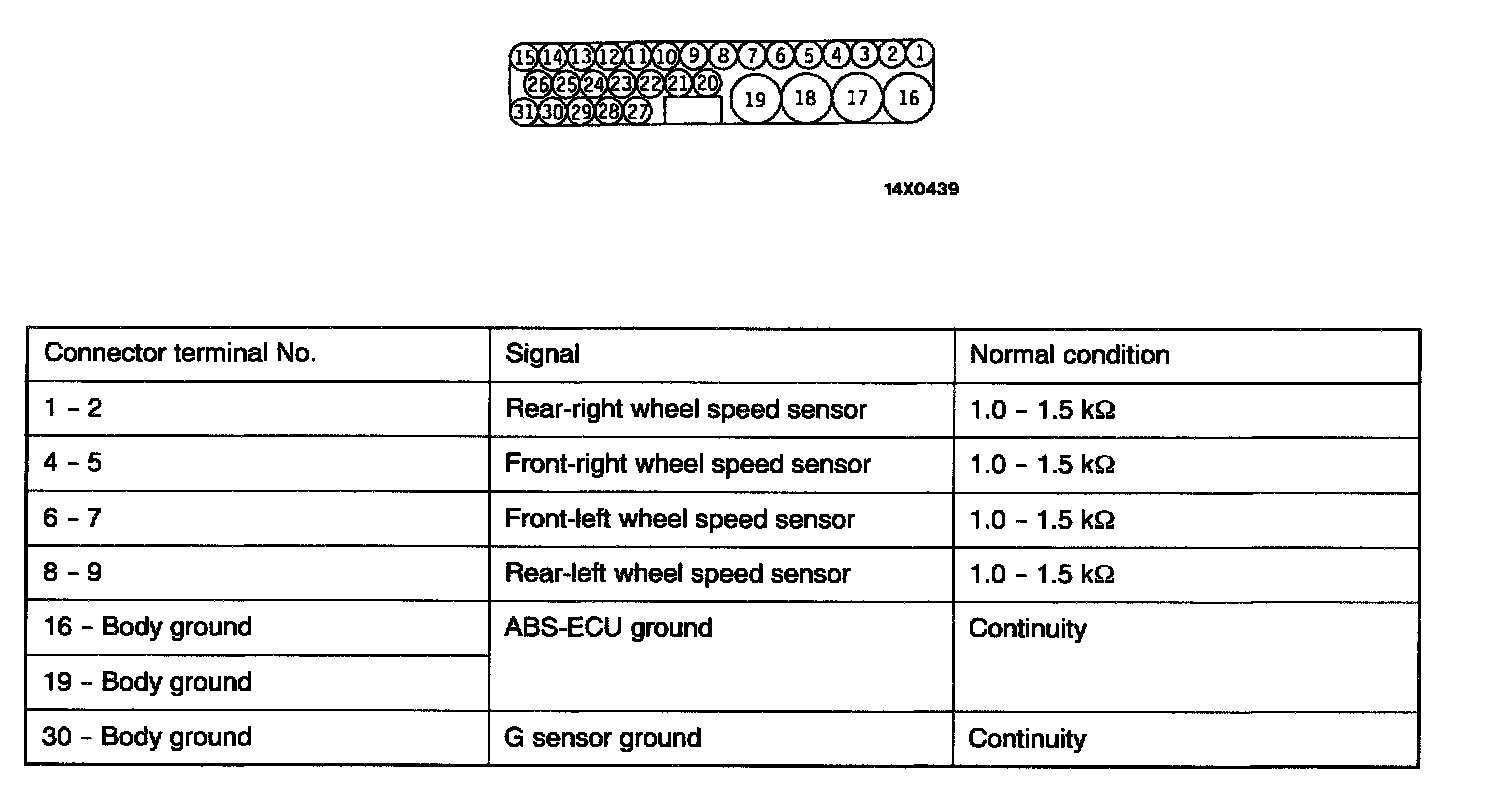 1. Turn the ignition switch off and disconnect the ABS-ECU connectors before checking resistance and continuity.