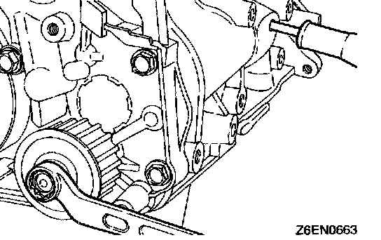 16. Holding the tensioner pulley with the special tool and torque wrench, tighten the center bolt to specification.