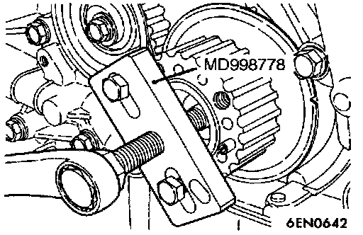 CAUTION: Locking the camshaft sprocket with a tool damages the sprocket.
