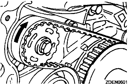 1. Make a mark on the back of the timing belt indicating the direction of rotation so it may be reassembled in the same direction if it is to be reused.