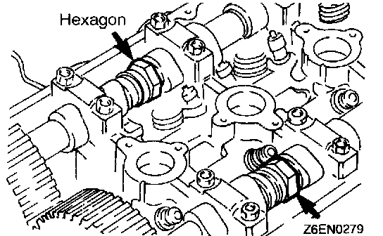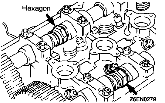 1. Using a wrench, hold the camshaft at its hexagon (between the No. 2 and No. 3 journals) and tighten the bolt to the specification.