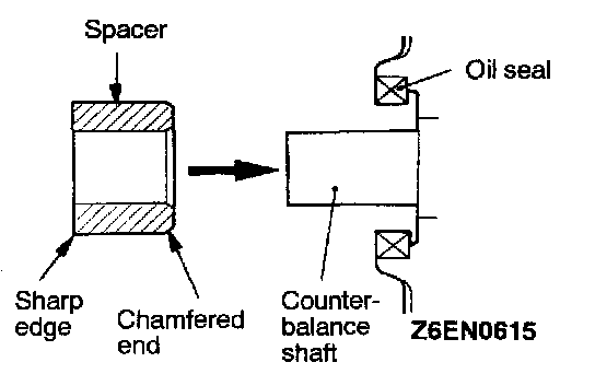 1. Install the spacer with the chamfered end facing toward the oil seal.