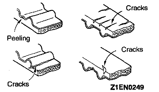 6. Abnormal wear of belt sides. The sides are normal if they are sharp as if cut by a knife.