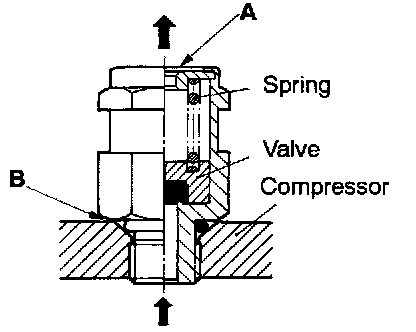 1. If a leak is detected at section A, replace the high-pressure relief valve. The valve can be used unless there is a leak from that section.
