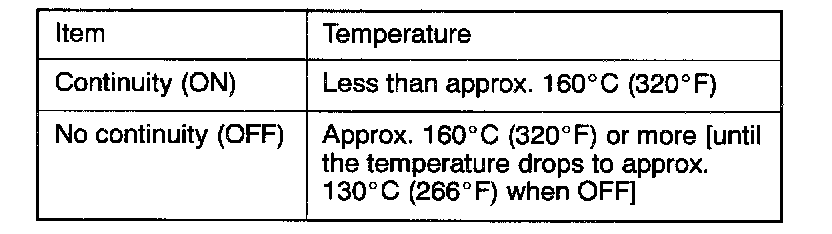 2. Use an ohmmeter to check the continuity between the terminals (1) or (2) when the engine oil has become heated.