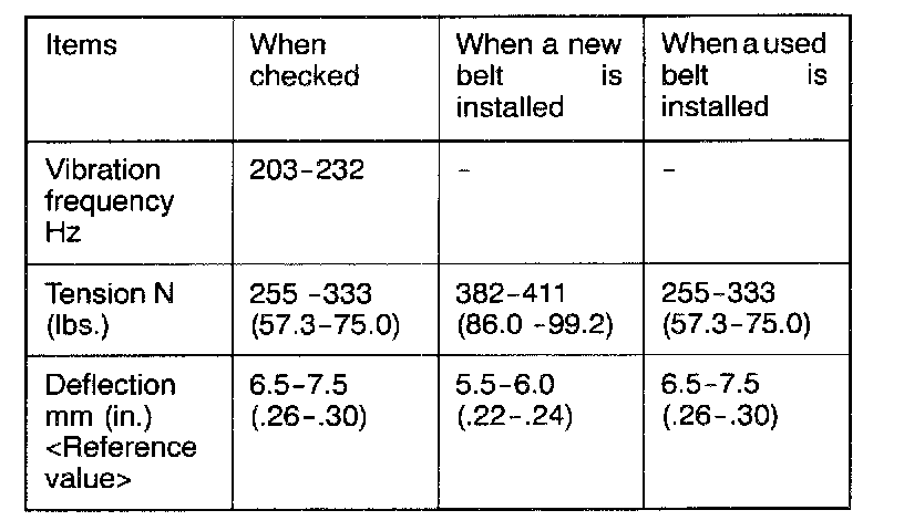 Apply 98 N (22 lbs.) of pressure against the location between the pulleys shown by the arrow (a) or (b) in the illustration and then measure the deflection.