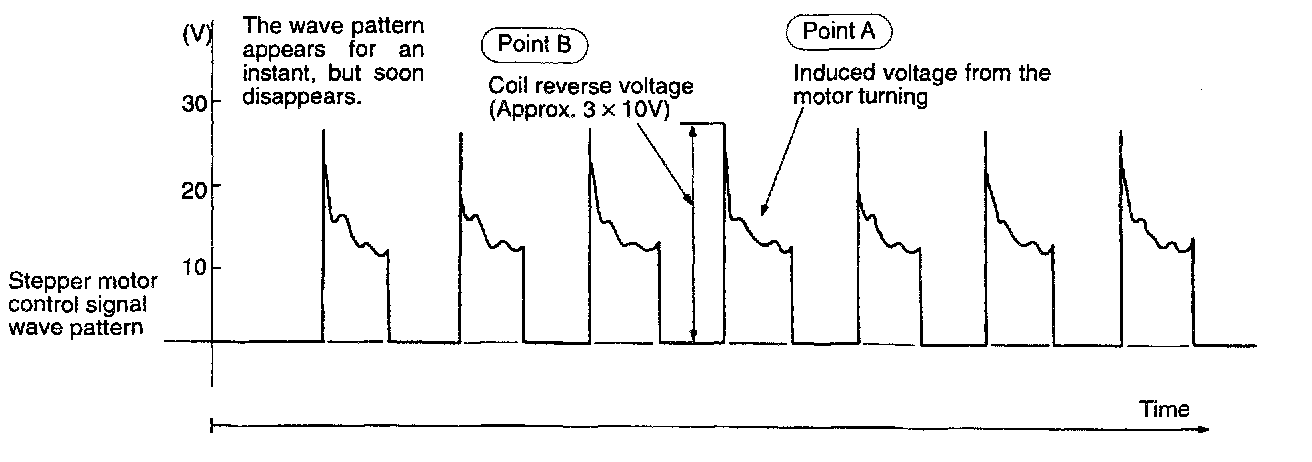 Check that the standard wave pattern appears when the stepper motor is operating.
