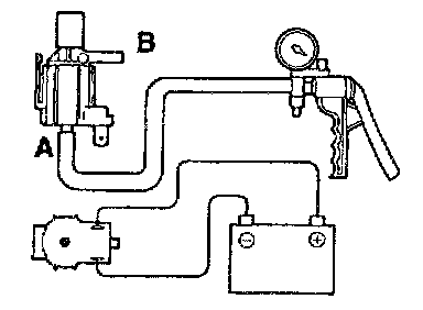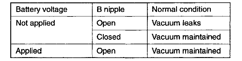 4. Connect a battery to the solenoid valve and apply a vacuum to check air-tightness.