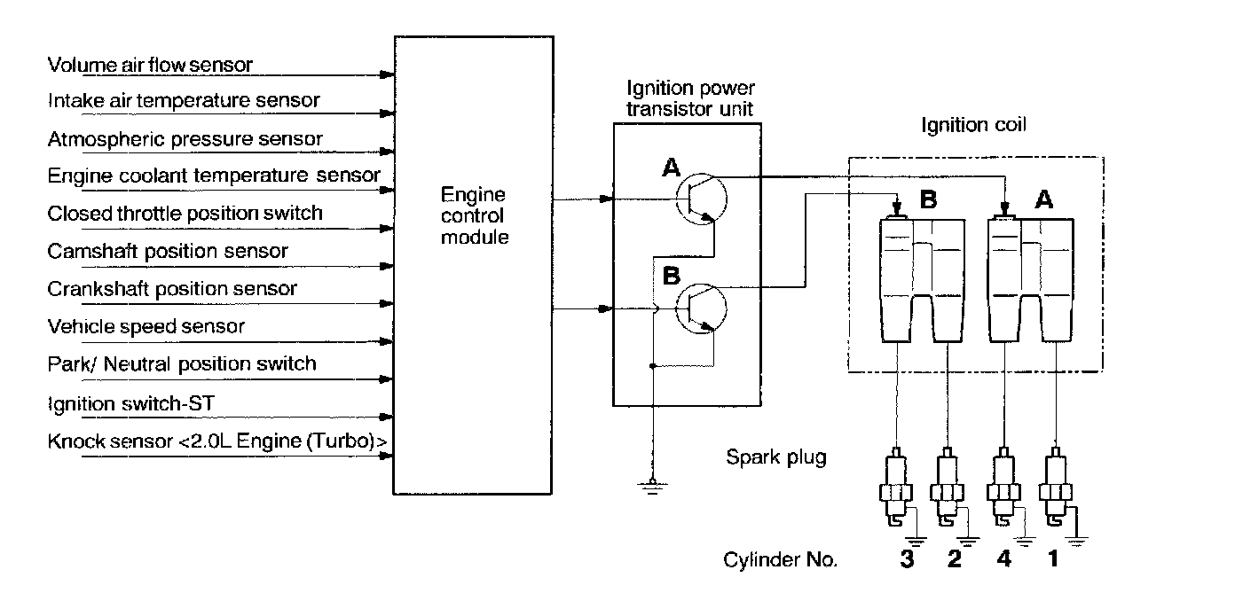 - When ignition power transistor A is turned from ON to OFF the spark plugs of No.1 and No. 4 cylinders spark. Turning of ignition power transistor B from ON to OFF will produce sparking in spark plugs of No.2 and No.3 cylinders.