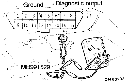 Connect a voltmeter to 4 terminal and 6 terminal of the data link connector underneath the instrument under cover, and take a reading of the diagnostic trouble codes from the movement of the needle on the voltmeter.
