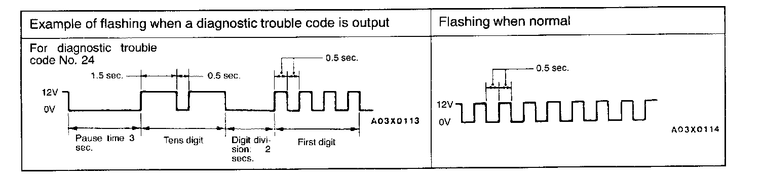 METHOD OF READING THE DIAGNOSTIC TROUBLE CODESWhen Using a Voltmeter