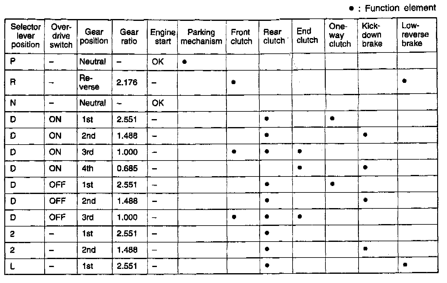 4-spd A/T, Function Element Chart: