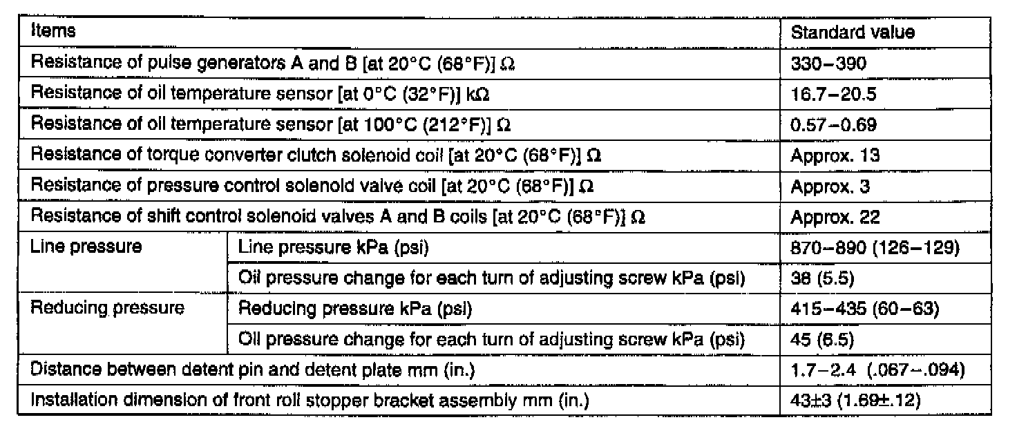 4-Spd A/T, Standard Values: