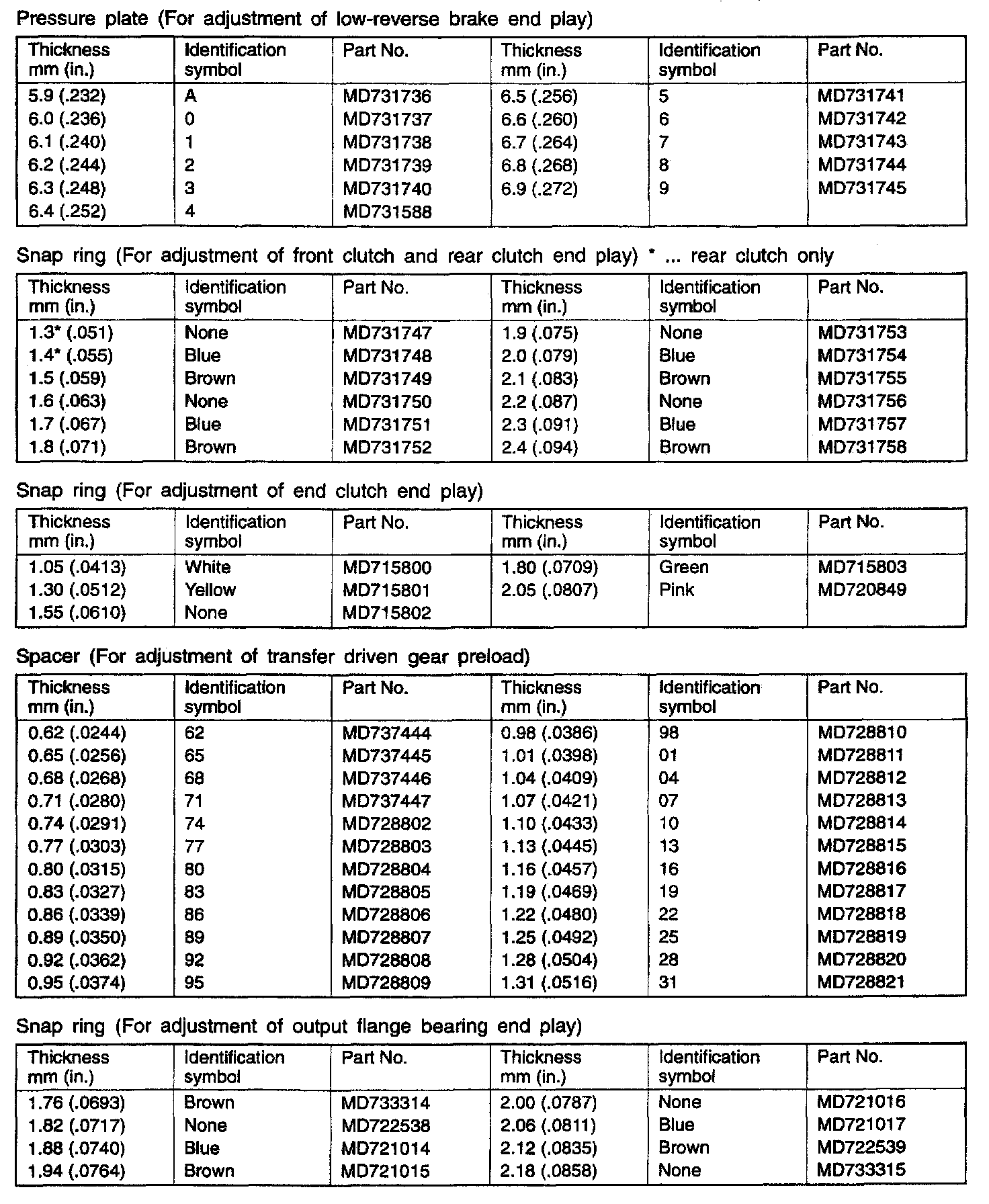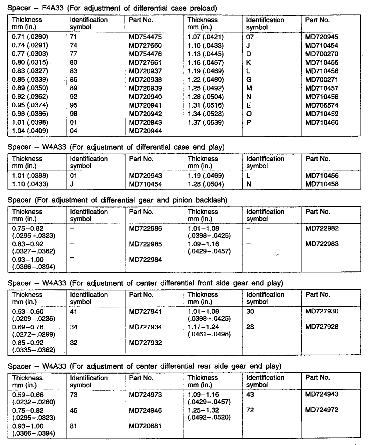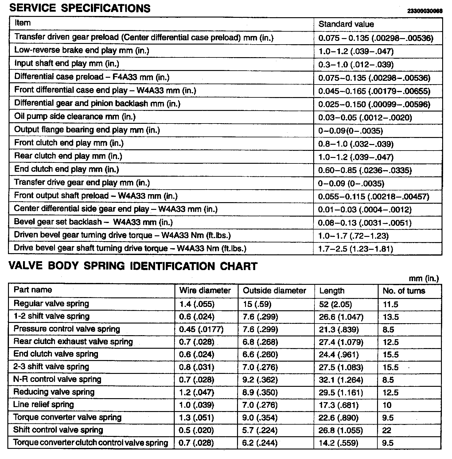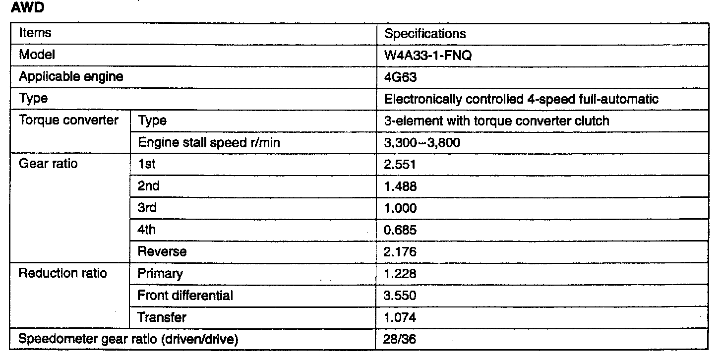 F4A33/W4A33 4-spd A/T, Standard Values & Identification:
