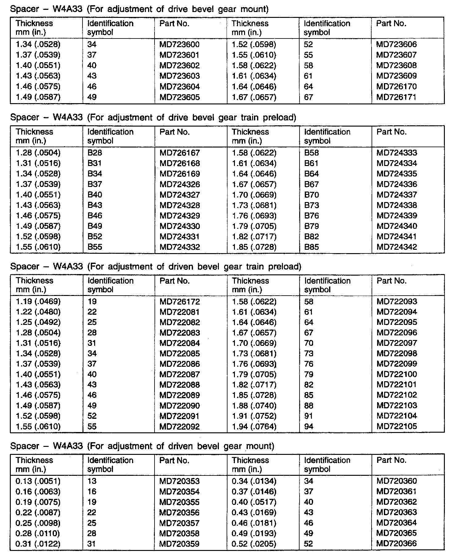 W4A33 4-spd A/T, Drive Bevel Gear Mount & Train Preload: