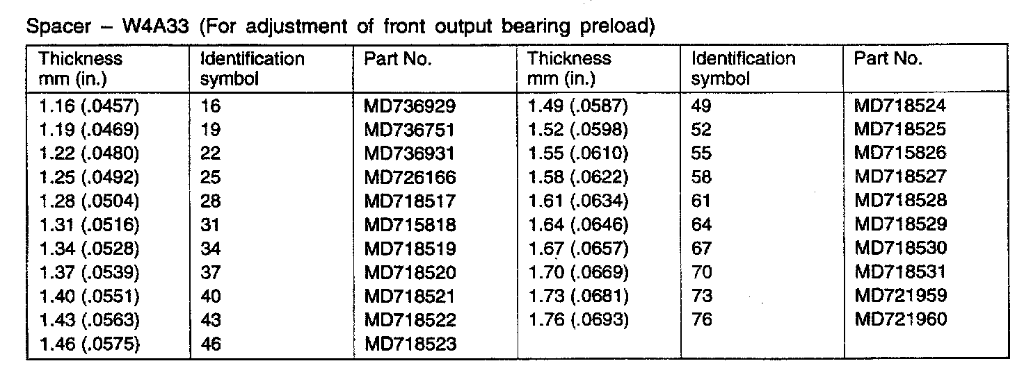 W4A33 4-spd A/T, Output Bearing Preload:
