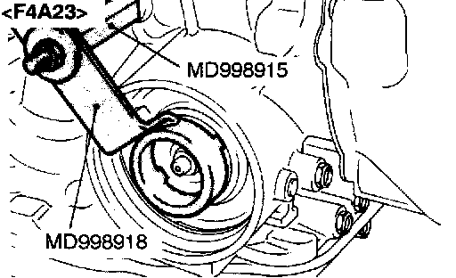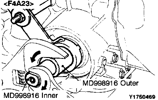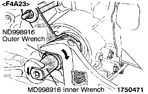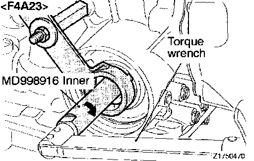 7. Attach a torque wrench to the special tool (inner) and tighten to a torque of 10 Nm (7.2 ft. lbs.) and repeating "Tighten" and "Loosen" two times then torque to 5 Nm (3.6 ft. lbs.). After that, back off the special tool (inner) 2 to 2-1/4 turns.