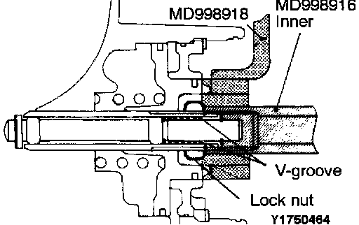 6. Engage the special tool (outer) on the lock nut.