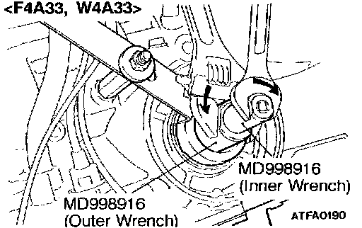 Rotating the outer cylinder clockwise and the inner cylinder counterclockwise, unlock the lock nut and special tool (inner).