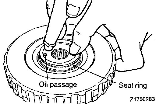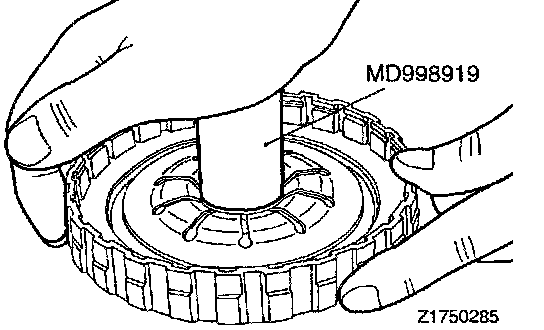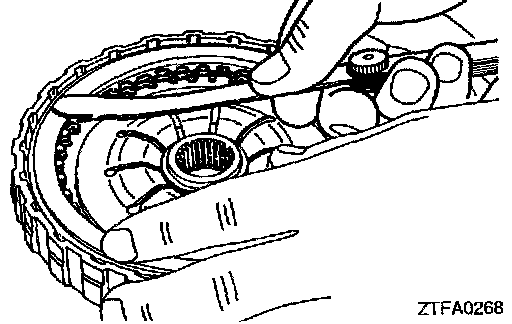 1. Check clearance between the snap ring and clutch reaction plate. To check the clearance, hold entire inside diameter of the clutch reaction plate down with 50 N (11 lbs.) force. If clearance is out of standard value, select a snap ring to obtain the standard value.