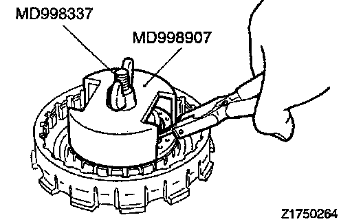 1. Install the clutch plate with their missing tooth portions (A in the illustration) in alignment.