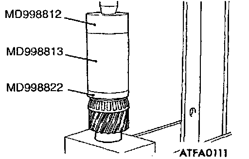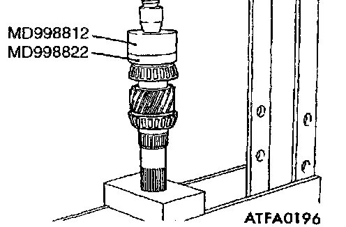 1. Using the special tool, press-fit the taper roller bearings on both ends of the front output shaft.