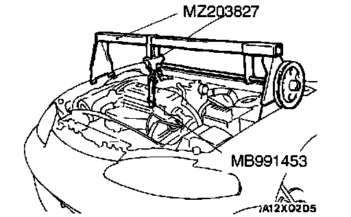 Set the special tool to the vehicle to support the engine assembly.