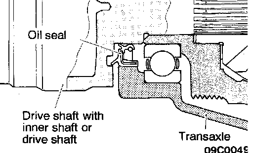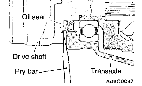 1. Insert a pry bar between the transaxle case and the drive shaft, and then pry the drive shaft from the transaxle.