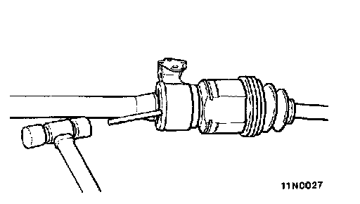 Temporarily install the drive shaft so that the inner shaft or T.J. case of the drive shaft is perpendicular to the transaxle.