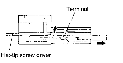 Use a flat-tip screwdriver or similar tool to pull out the terminal from the overdrive switch/position indicator light connector case.