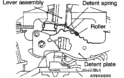 Shift the selector lever to the neutral (N) position, and then install the detent spring assembly so that the roller is in the detent plate groove.