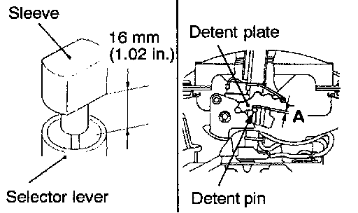 1. Put the selector lever in the "N" position, turn the sleeve and adjust the dimension between the sleeve and the end of the lever so it reaches 16 mm (1.02 inch)