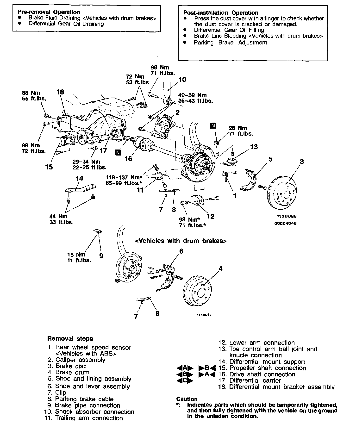 Support the differential carrier with a jack. Then remove the connecting bolt between it and the rear crossmember and remove the differential carrier.