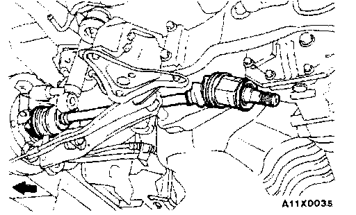 1. Push the lower part of the knuckle to the outside of the vehicle, and then separate the drive shaft from the differential carrier. At this time, use a tire lever or similar to separate the drive shaft connection.
