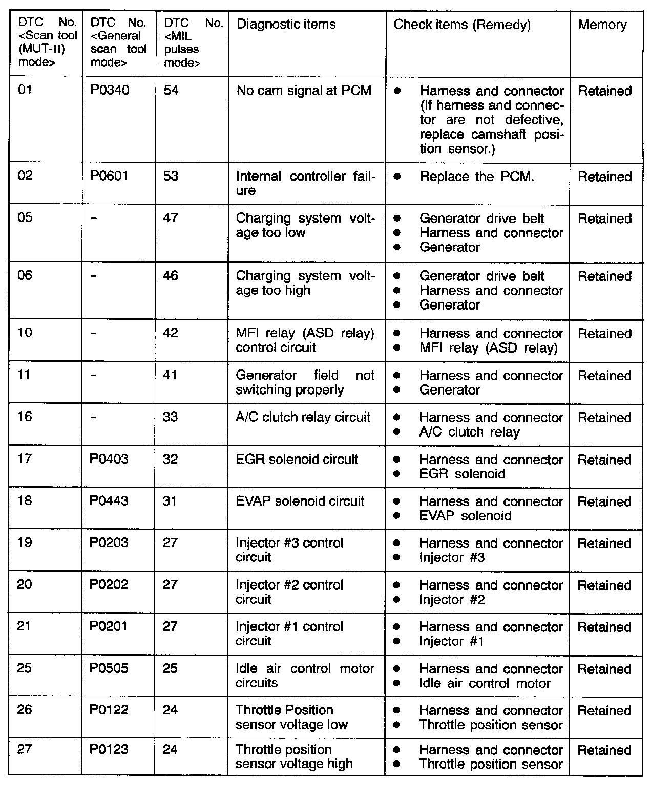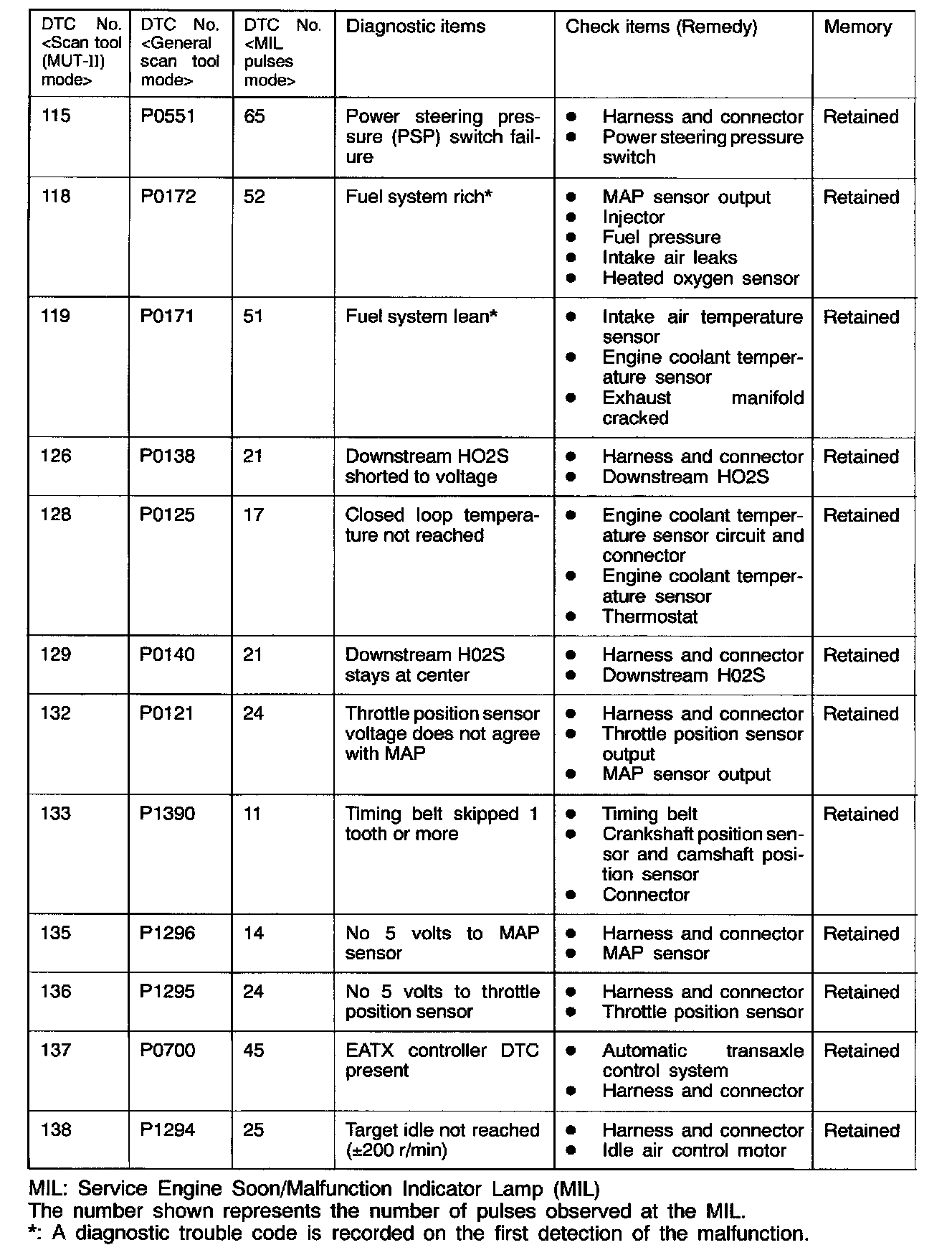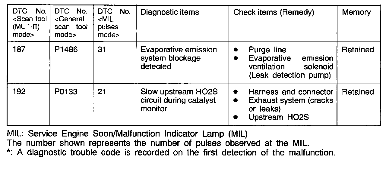 *: A diagnostic trouble code is recorded on the first detection of the malfunction.