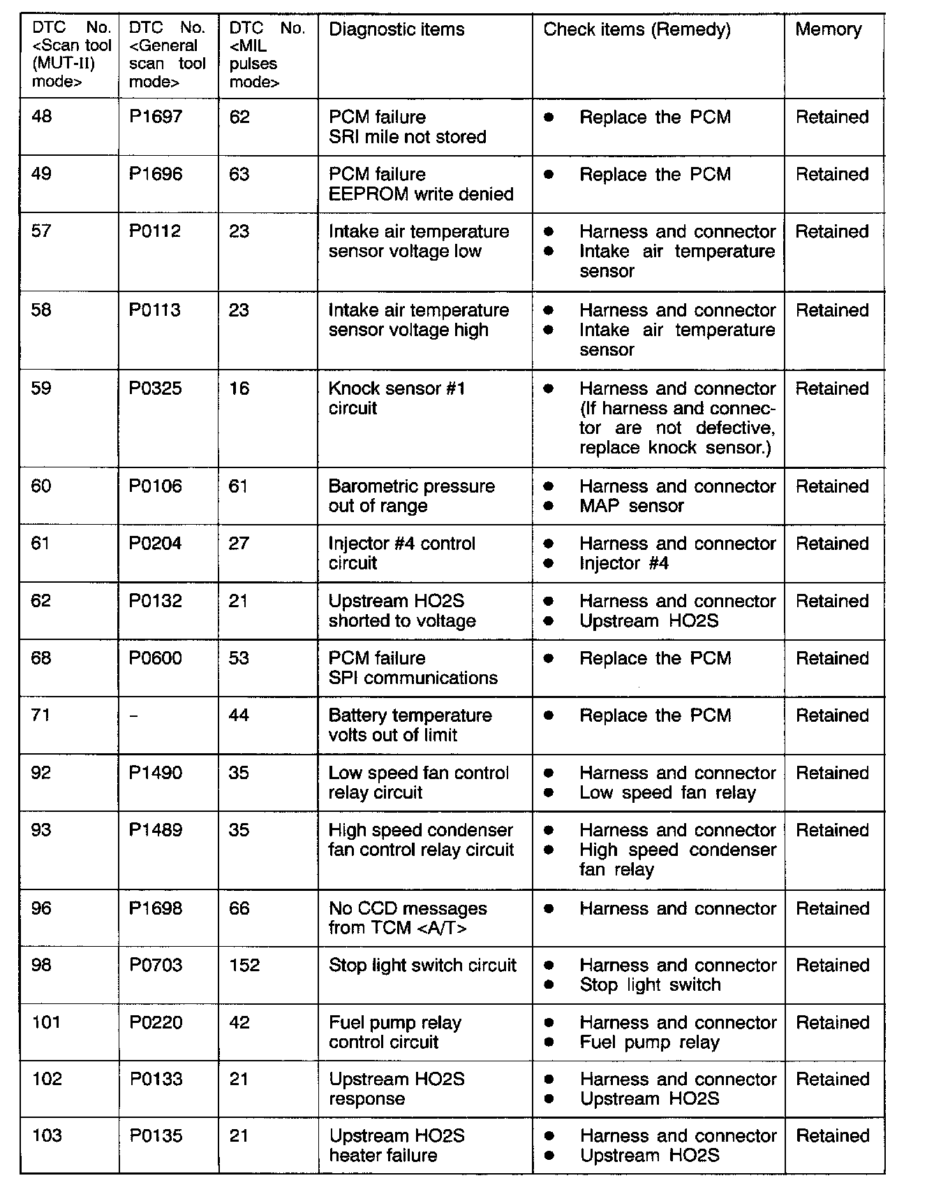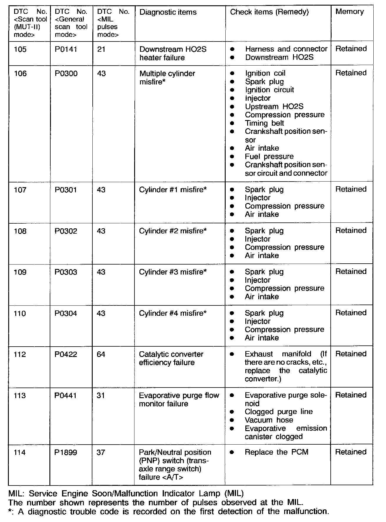 *: A diagnostic trouble code is recorded on the first detection of the malfunction.