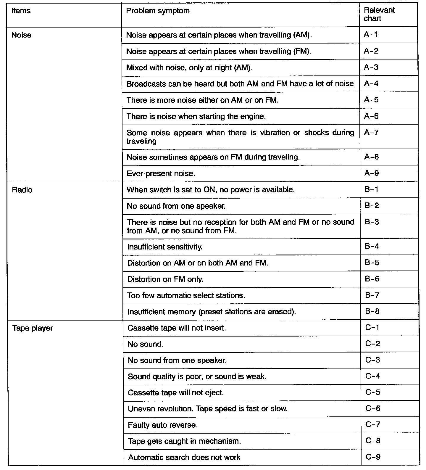 QUICK REFERENCE TROUBLESHOOTING CHART