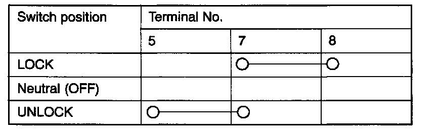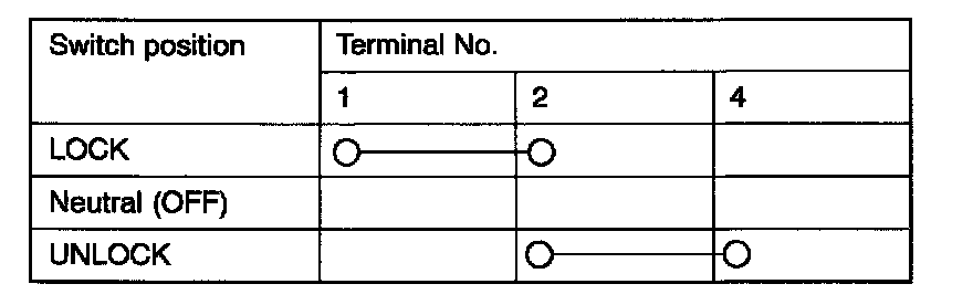 CENTRAL DOOR LOCK SWITCH CONTINUITY CHECK