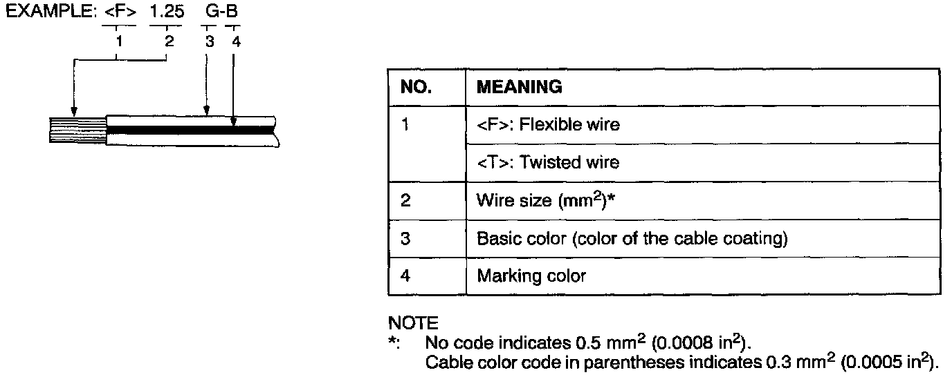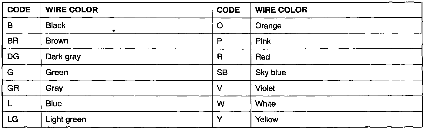 Wire colors are identified by the following color codes.