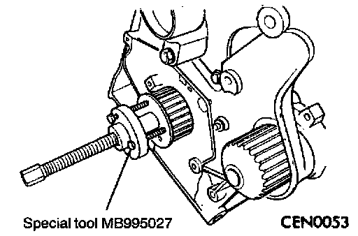 8. Remove crankshaft sprocket using Special Tool MB995027.