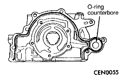 1. Apply Loctite 51817 to oil pump as shown in the figure. Install oil-ring into the counter bore on the oil pump body discharge passage.