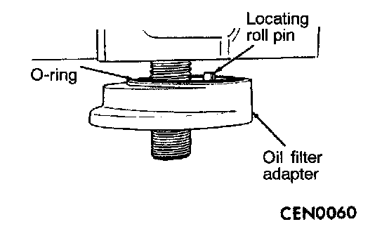 10. Ensure O-ring is in the groove on adapter. Align roll pin into engine block and tighten assembly to 55 Nm (40 ft. lbs.).