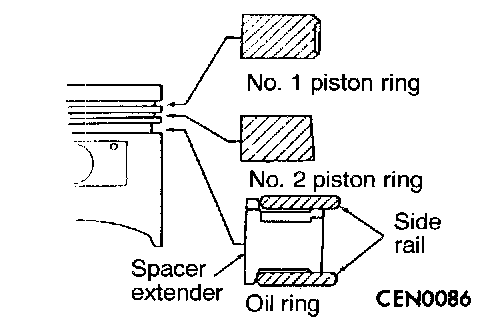 3. Remove the upper oil ring side rail, lower oil ring side rail and then oil ring expander from piston.