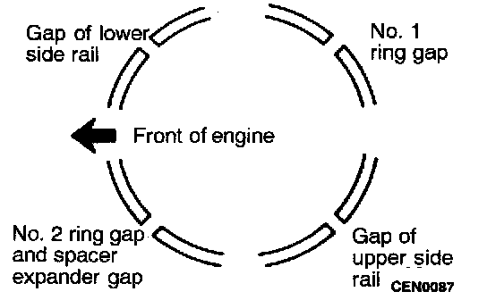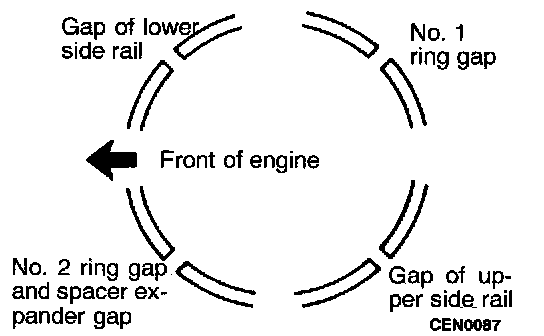 2. Before installing the ring compressor, make sure the oil ring expander ends are butted and the rail gaps located as shown in the figure.