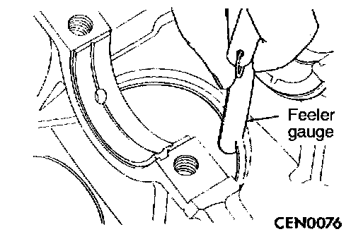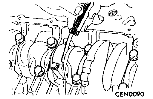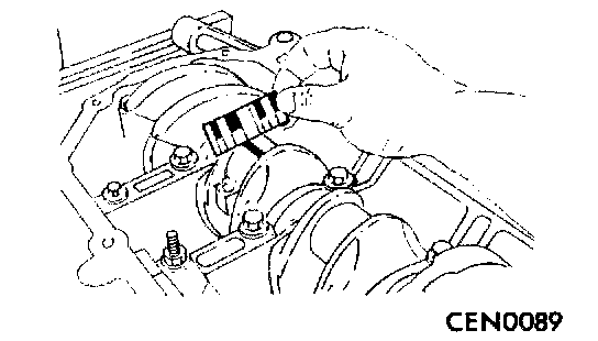 1. Place a piece of Plastigage across the entire width of the bearing shell in the bearing cap approximately 6.35 mm off center and away from the oil hole. In addition, suspect areas can be checked by placing Plastigage in the suspect area.