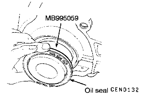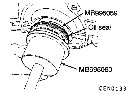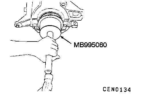 13. Drive the seal into the block using Special Tool MB995060 and handle C-4171 until the tool bottoms out against the block.